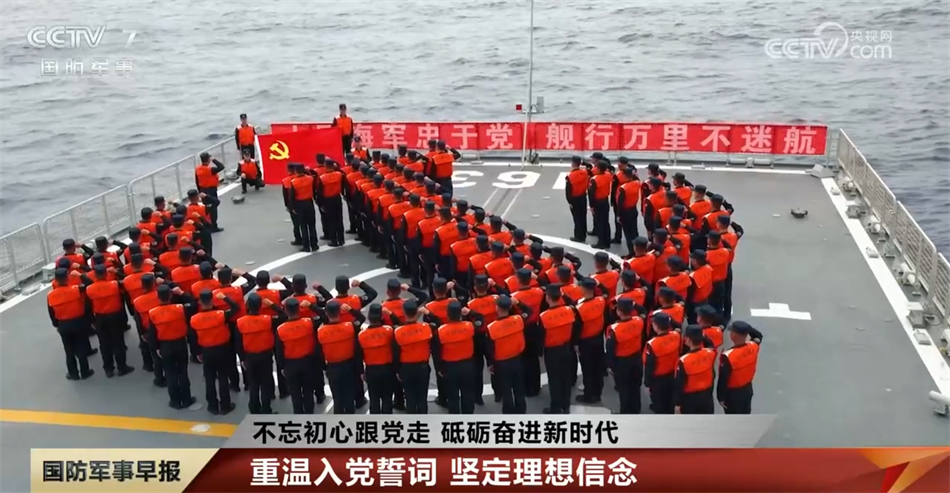 鲜红的党旗指引奋斗方向,铿锵的誓言抒发报国情怀。无论是座座军营,还是演训一线,官兵们整齐列队、重温入党誓词,表达对党的无限忠诚和投身强军伟业的坚定决心。在这个特殊的日子里,很多年轻的战友光荣地加入中国共产党,面对党旗,他们也立下了前进的目标。