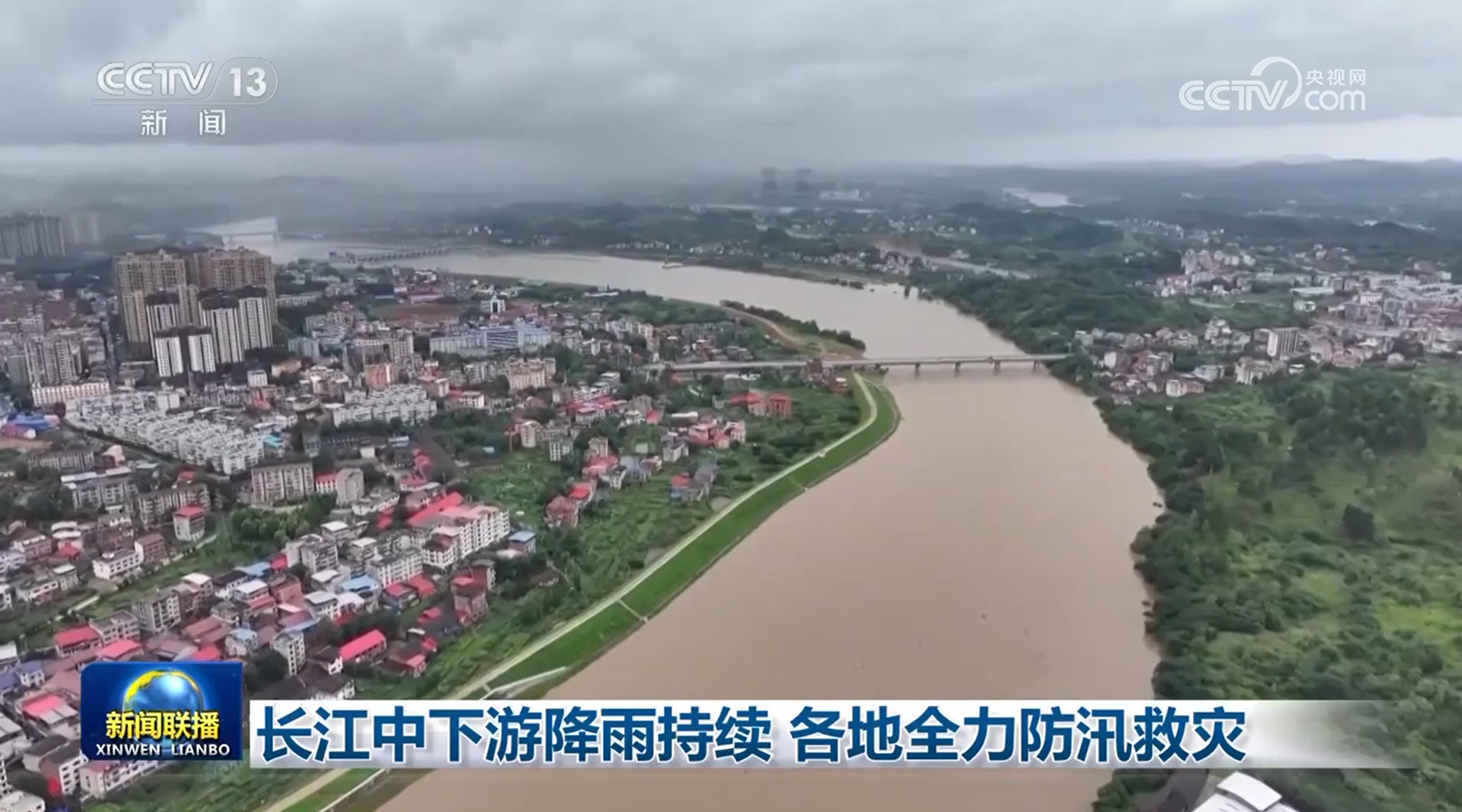 央视网消息(新闻联播):中央气象台今天(7月1日)继续发布暴雨橙色预警,我国长江中下游至贵州、广西等地仍有强降雨,各地积极应对,全力防汛救灾。