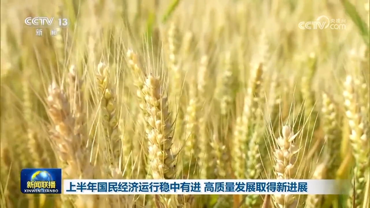 央视网消息(新闻联播):国家统计局今天(7月15日)公布的数据显示,上半年,我国经济运行总体平稳,转型升级稳步推进,新动能加快成长,高质量发展取得新进展。