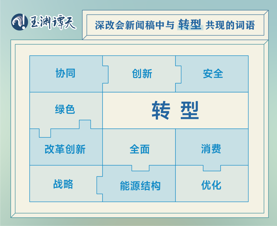 深改会的新闻稿中,伴随“绿色转型”出现的,还有一连串“转型”——全面转型、协同转型、创新转型、安全转型;同时还涉及了支撑绿色转型的“消费转型”,以及财税、金融、投资、价格政策和相关市场化机制等政策体系的健全。