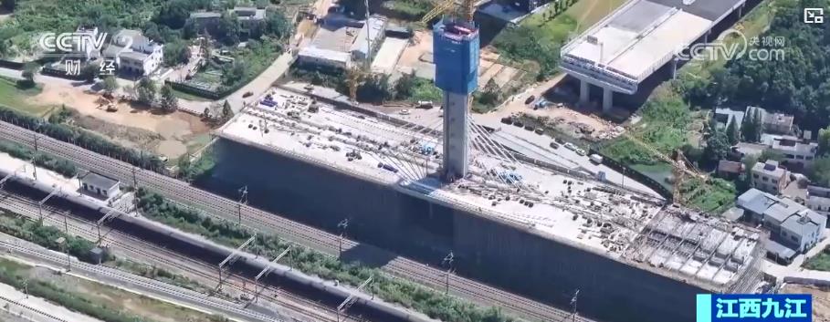 7月30日,在江西九江,随着最后一节混凝土浇筑完成,世界最大吨位非对称曲线斜拉转体桥——九江快速路跨庐山站转体斜拉桥首个主墩塔柱顺利封顶。斜拉桥全长465米,桥面总宽度42米,双向8车道,此次封顶的主墩塔柱为子塔,塔顶高7米,其中1米高实心段和6米高楔形塔冠。