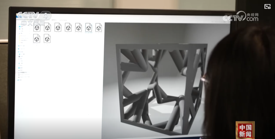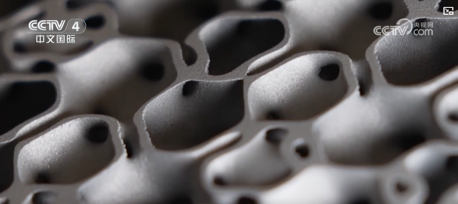 这是之江实验室正在研发的多孔合金材料,科研人员根据材料属性和力学原理,把合金内部变成了不规则的蜂窝状。