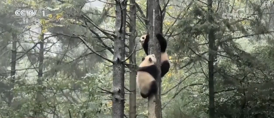 正在接受培训的圈养大熊猫的幼仔,最近就跟着妈妈一起解锁了新技能。闸门一开,“田田”母子一前一后灵敏地爬上陡坡,开始“考察”新环境。不一会儿,它们就钻进了丛林中。未来一年多,幼仔将由妈妈带领,继续学习空间识别、天敌识别、觅食、寻找水源、躲避危险等生存技能。