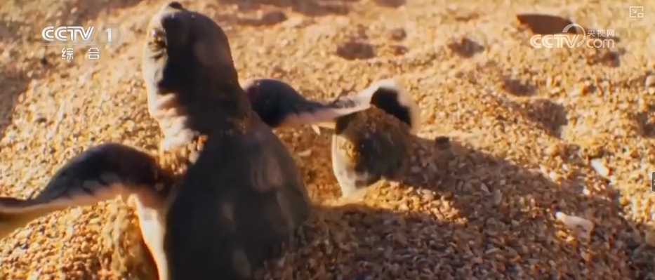 黄程介绍,小海龟从一出生就会面临残酷的“选拔”,被沙土掩埋、被草根缠绕、被同伴挤压,或被天敌捕食……为了守护小海龟的海洋回归之旅,黄程几乎每天早上7时就会沿着北岛海岸线巡逻,第一时间找到海龟的产卵点,并竖起指示牌加以保护。