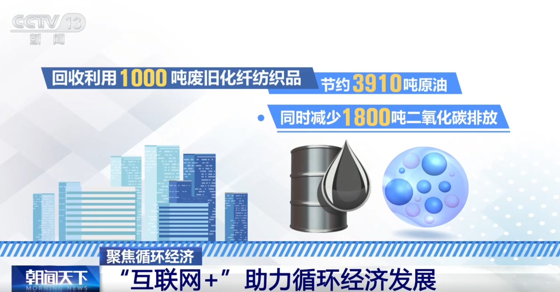 我国是全球最大的纺织服装生产国和消费国,同时,我国废旧纺织品累计存量近亿吨。回收利用1000吨废旧化纤纺织品,能够节约3910吨原油,同时减少了1800吨二氧化碳排放。