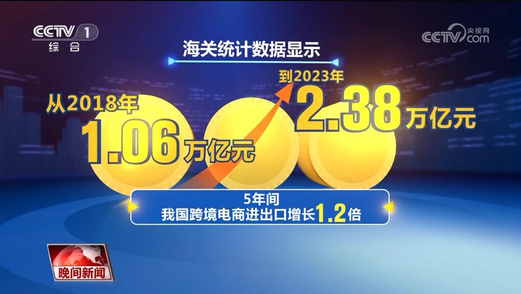 海关统计数据显示,从2018年的1.06万亿元到2023年的2.38万亿元,五年间,我国跨境电商进出口增长了1.2倍。2023年,海关监管的跨境电商、跨境邮件快件达70多亿件,平均每天2000万件左右。