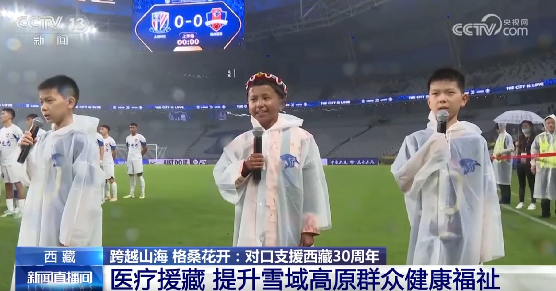 今年6月26日晚,12岁的藏族女孩达娃吉拉在上海迎来幸福时光。在一场中超联赛比赛现场,她带领现场观众齐唱国歌。