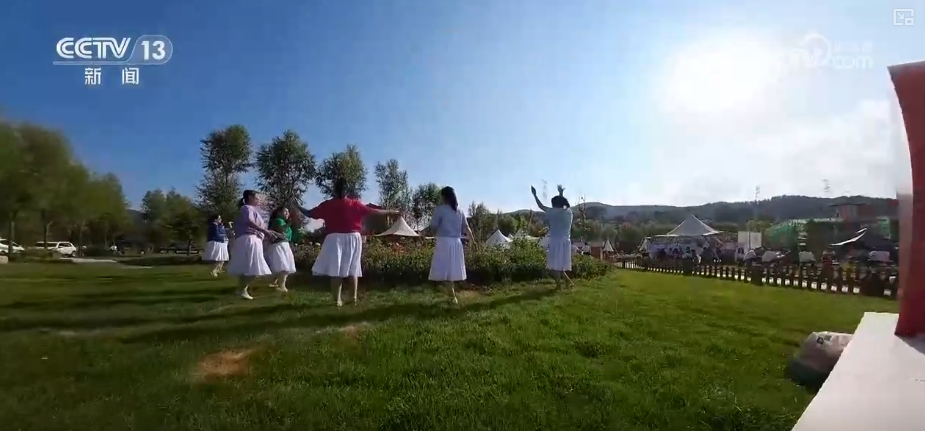 又到了周末,村里的露营基地热闹了起来。城里人喜欢乡村的绿色诗意,村民们热情好客、能歌善舞。您瞧!加装了保护装置的穿越机也被大娘邀请下来跳上一段。