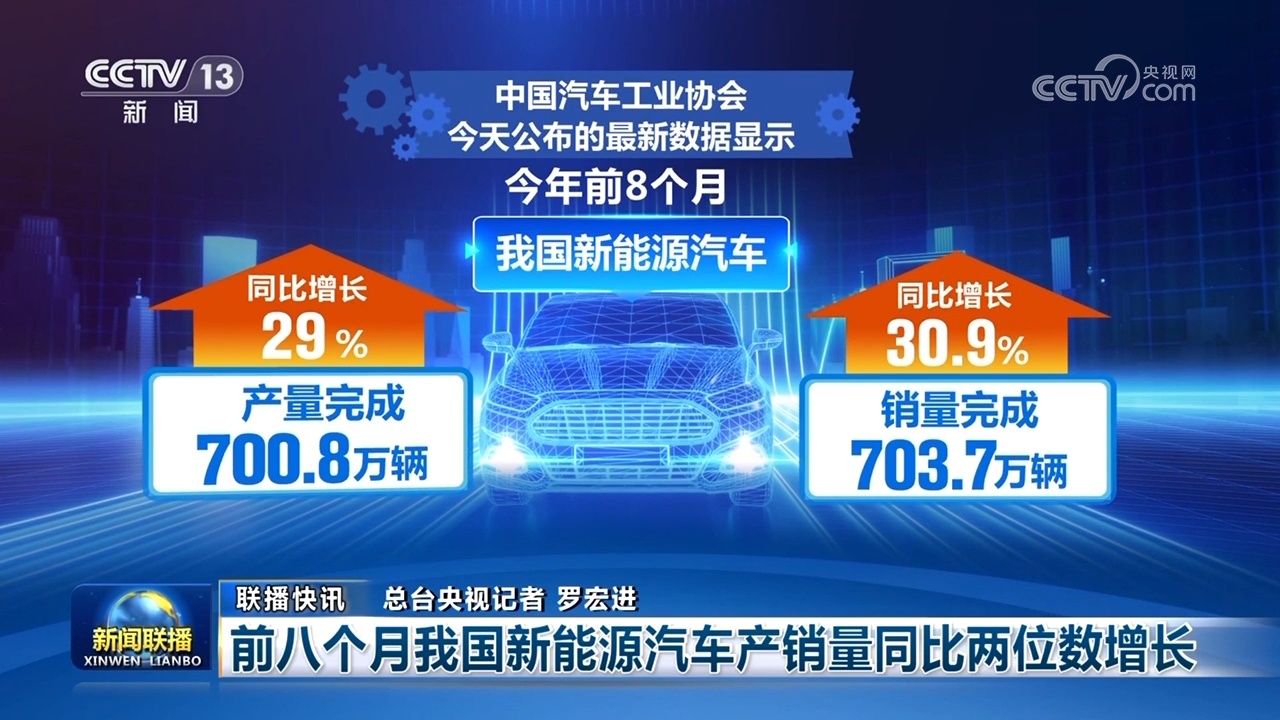 中国汽车工业协会9月10日公布的最新数据显示,今年前8个月,我国新能源汽车产销量分别完成700.8万辆和703.7万辆,同比分别增长29%和30.9%,新能源汽车的新车销量占全部新车销量的37.5%。