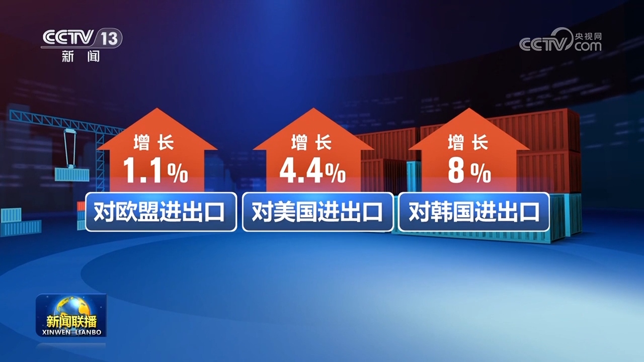 海关统计数据显示,今年前8个月,我国对共建“一带一路”国家进出口13.48万亿元,增长7%。其中,对东盟进出口4.5万亿元,增长10%,占同期我国进出口总值的15.7%。东盟继续为我国第一大贸易伙伴。同期,对欧盟、美国、韩国等进出口分别增长1.1%、4.4%、8%。
