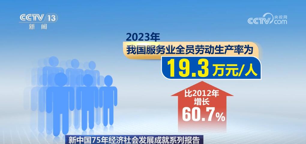 服务业对外开放不断扩大。2012年以前,我国服务业实际利用外商直接投资额占实际利用外商直接投资额的比重不到50.0%。随着服务业领域加速改革,2023年,我国服务业全员劳动生产率为每人19.3万元,按不变价格计算,分别是1952年1978年的14.3倍和9.4倍,比2012年增长了60.7%。