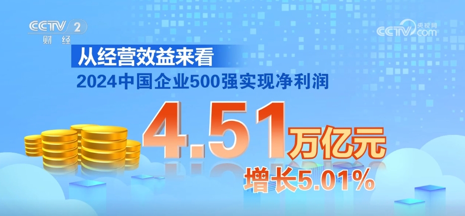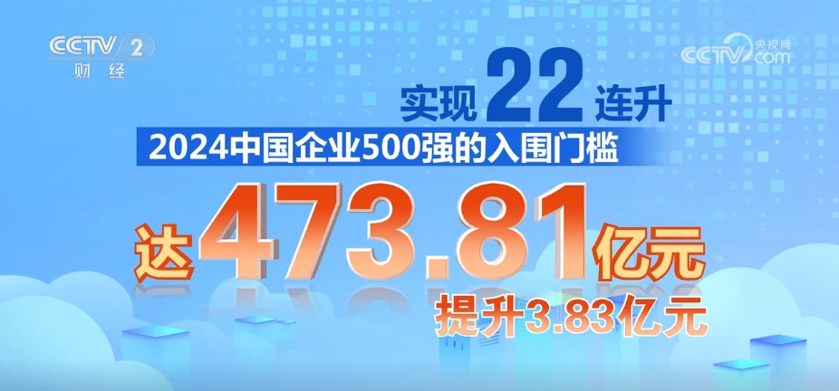 2024中国企业500强的入围门槛实现22连升,达473.81亿元,提升3.83亿元。从经营效益来看,2024中国企业500强实现净利润4.51万亿元,增长5.01%;营业收入总额较上年相比增长1.58%。