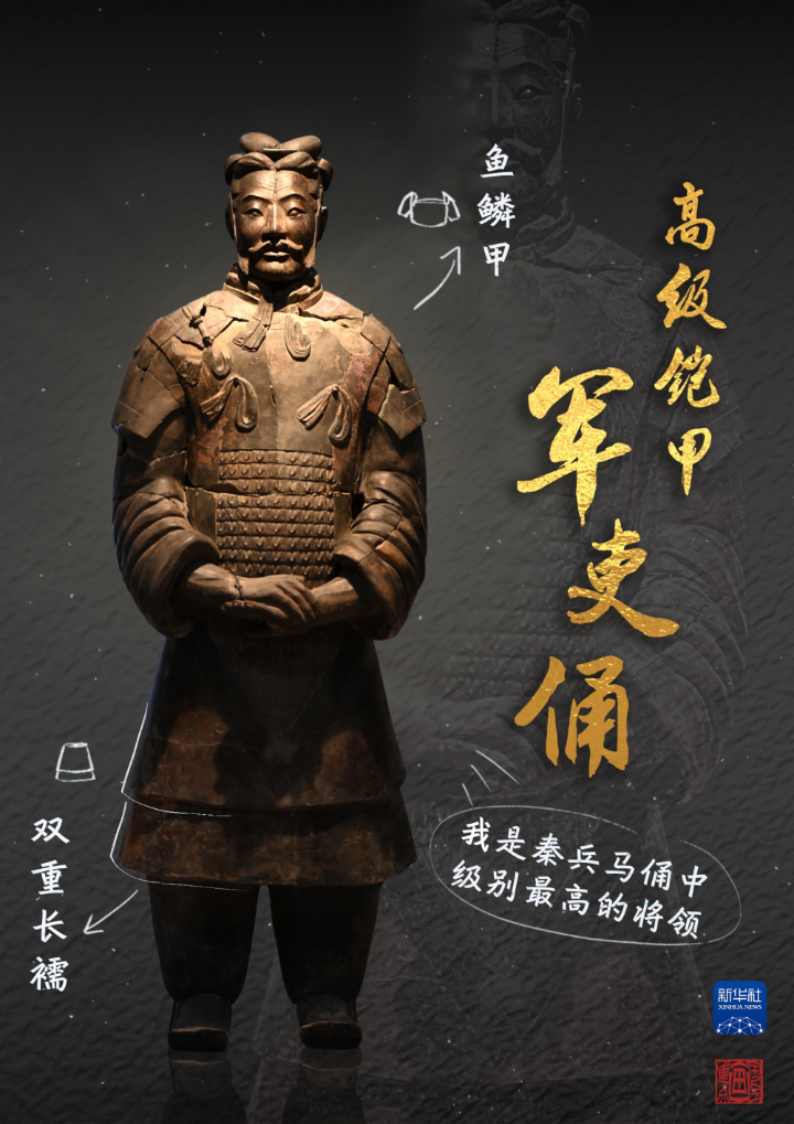 高级铠甲军吏俑头戴鹖冠