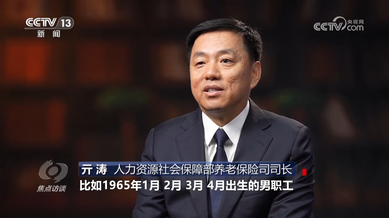 人力资源社会保障部养老保险司司长亓涛:“举个例子,比如1965年1月、2月、3月、4月出生的男职工,如果不改革,可以在明年的1月、2月、3月、4月份退休,改革以后,他的退休年龄会相应延迟一个月,变成明年的2月、3月、4月、5月。1965年5月、6月、7月、8月这四个月出生的男职工,改革以后退休的时间会延迟2个月,变成明年的7月、8月、9月、10月,这样他们的法定退休年龄就提高到60岁零2个月,以此类推。”
