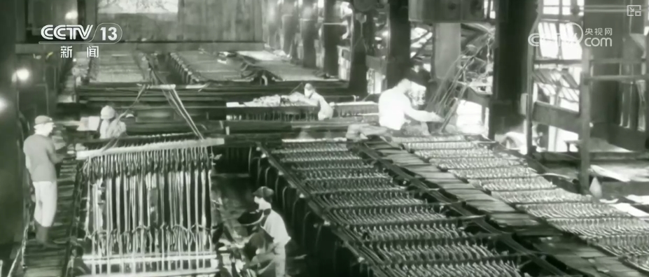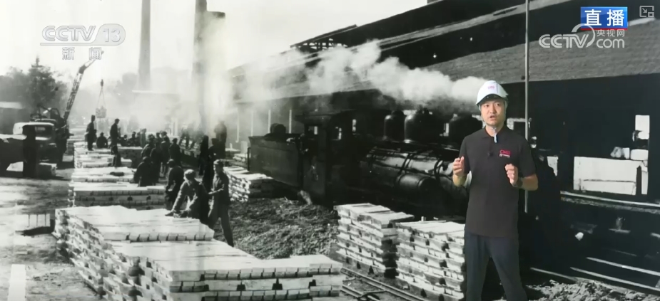 就是这么一个重要的有色金属,对它的开采和利用走了一条很长的路。通过虚拟技术,带您回到新中国成立初期那个百业待举、百废待兴的年代。现在这个景象就是20世纪50年代,小火车开进冶炼厂区装运锡锭的劳动现场。生产出来的锡锭,每一块大概25公斤。