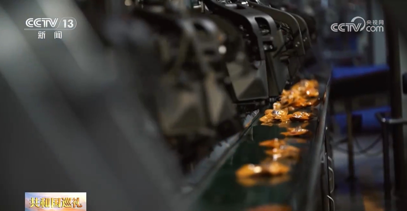 记者手里这包300多克的袋装螺蛳粉就出自她身后的生产线,走过200米的参观通道,螺蛳粉自动化 、智能化的生产工艺尽收眼底,平均调制一碗粉的功夫,就有上百件的袋装螺蛳粉从柳州生产下线发往全国各地。
