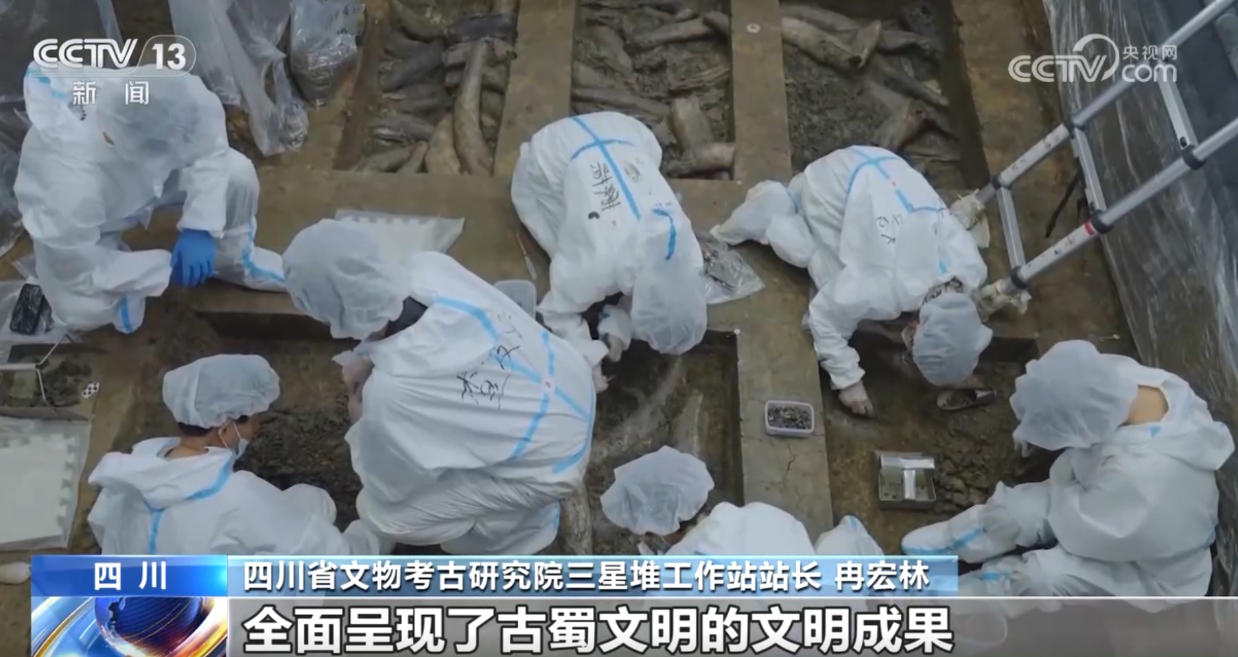 四川省文物考古研究院三星堆工作站站长冉宏林介绍称:“这些年在三星堆遗址开展了系统、全面而且持久的考古工作与研究,发现了城墙、宫殿建筑、祭祀区,还有玉石器手工业作坊,全面呈现了古蜀文明的文明成果以及高度发达的青铜文明。”