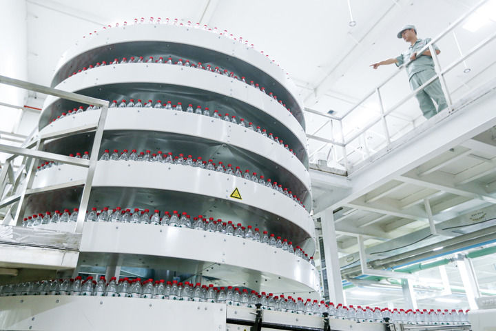 这是2024年8月13日拍摄的农夫山泉股份有限公司黄山生产基地内的自动化灌装生产线。新华社发(施亚磊摄)