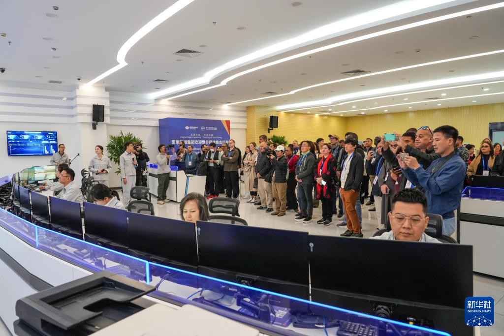 10月13日,嘉宾在国家能源集团新疆能源集控中心参观。新华社记者 陈晔华 摄