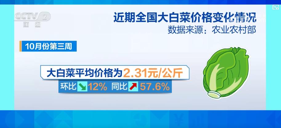 据了解,目前长春市蔬菜供应总体充裕,冬储类品种销量明显增加。从全国来看,10月份第三周全国大白菜平均价格为每公斤2.31元,环比下降12%,同比上涨57.6%。