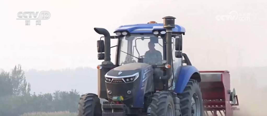 在盐湖区解州镇曲村的麦田里,种粮大户董会龙正借助量身定制的全新智能化设备——“全动力换向+无人驾驶辅助器导航”的拖拉机,抢抓农时播种冬小麦。