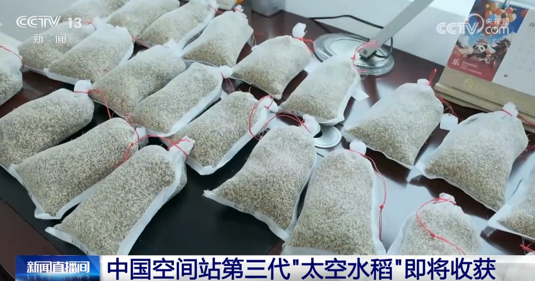 专家介绍,空间站获得的59粒水稻种子是第一代,人工气候室繁殖获得的近1万粒是第二代,农场大田里即将丰收获得的是第三代。通过对三代太空水稻种子进行研究,已经取得初步研究成果。