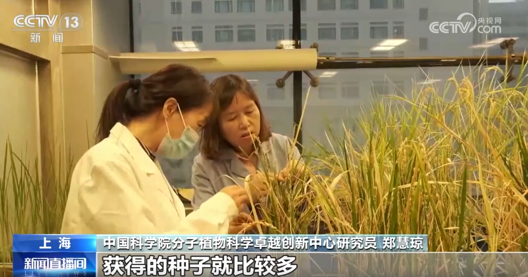 中国科学院分子植物科学卓越创新中心研究员郑慧琼称:“开始就是6粒种子随问天舱上天以后,收到了59粒种子,回来以后这59粒种子因为比较珍贵,我们就从中拿了部分在人工气候室进行繁殖,人工气候室繁殖之后,获得的种子就比较多,大概有将近1万粒种子,然后我们在其中再拿出了一部分,到大田里面进行繁殖,这就是大田里面收到的稻穗。”