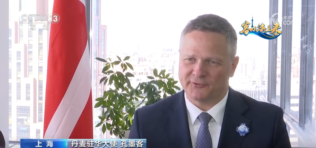 央视网消息:本届进博会吸引了152个国家、地区和国际组织参加国家展和企业展,其中既有首次亮相的“新面孔”,也有连续多届参加的“老朋友”。作为连续七年参展的“老友”,丹麦此次带来了哪些新亮点,中丹两国在哪些领域蕴含着巨大的合作潜力?今天的《进博面对面》,来看总台央视记者对丹麦驻华大使孔墨客的专访。