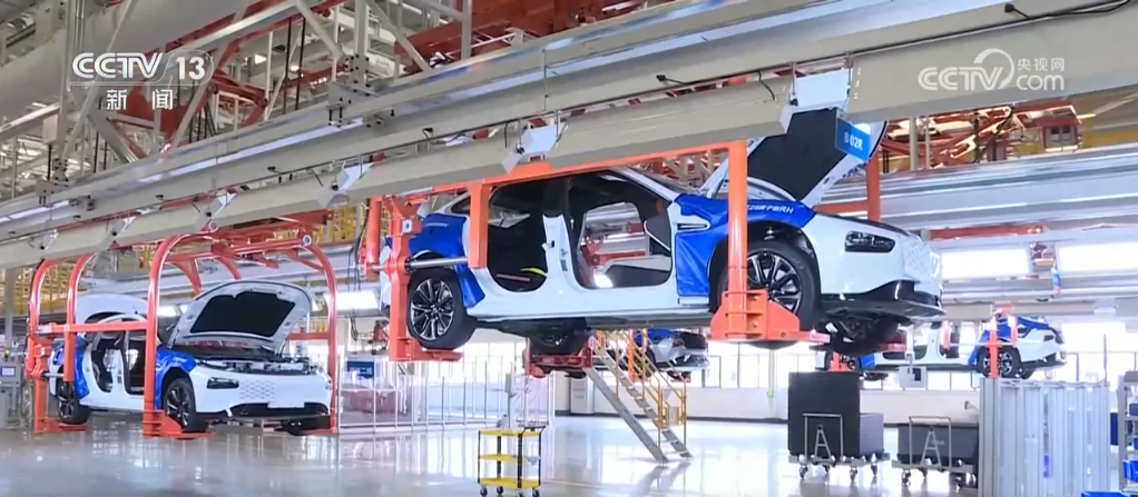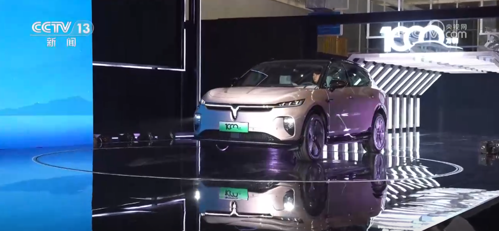 记者来到位于湖北武汉的东风新能源汽车工厂,随着展台上这台新能源汽车下线,以及大屏幕上全国各地多家汽车工厂的新能源汽车同时下线,标志着我国新能源汽车年度产量首次突破1000万辆,生产规模再上新台阶。