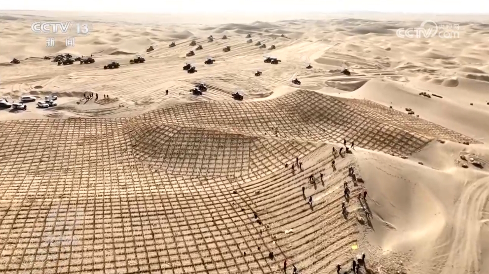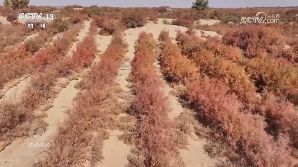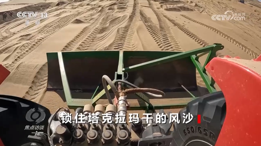 新疆维吾尔自治区林业和草原局生态保护修复处处长王振锡:“开展塔克拉玛干沙漠边缘‘锁边’工程能够阻沙护路、阻沙护城,这是经济社会发展非常有力的坚实保障。”