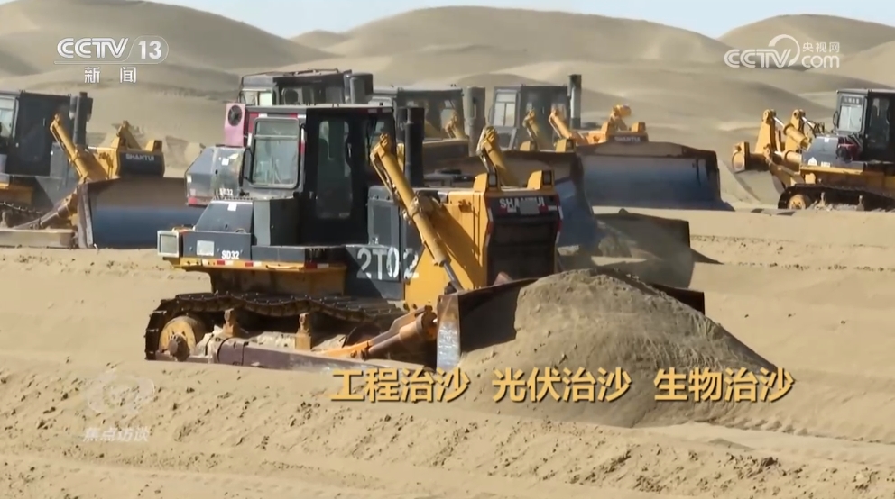 王振锡:“对治理区域的风沙危害情况、气象条件、水文条件都做了系统的梳理和分析。水资源条件相对比较好的区域,优先采用生物治沙的方式;在水资源条件相对比较匮乏,远离绿洲的区域,主要采用光伏治沙;在不具备水资源条件,光伏铺设条件也达不到要求的地方,主要以工程治沙为主。”