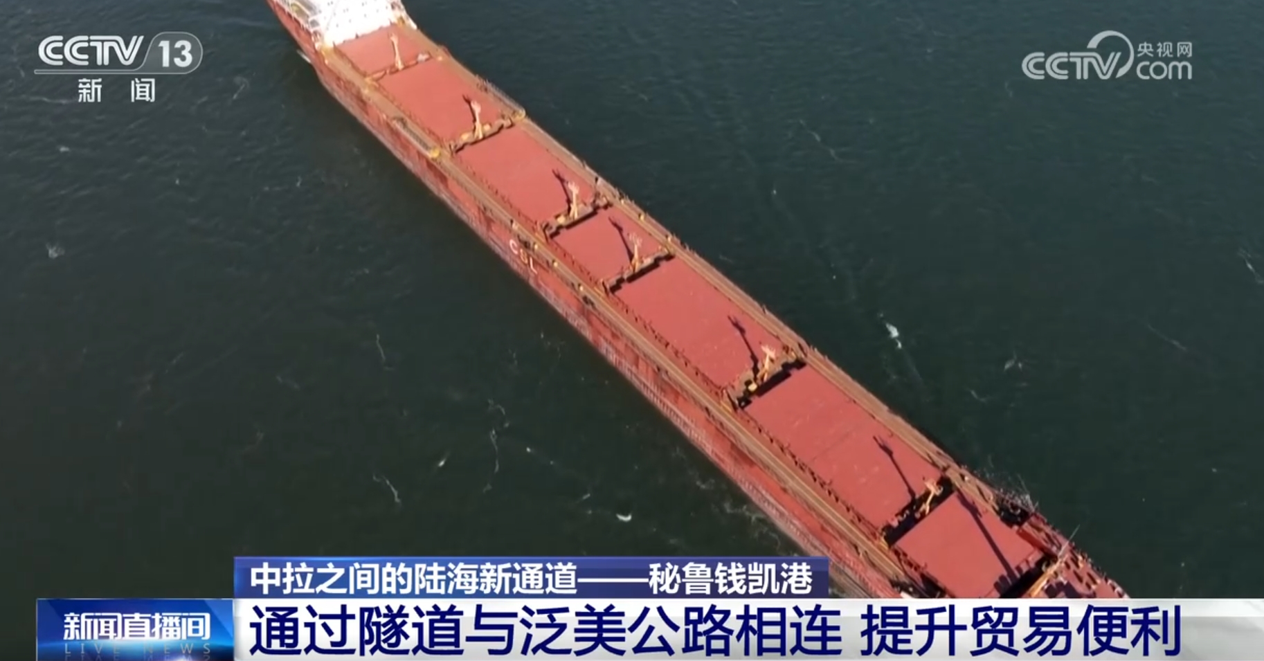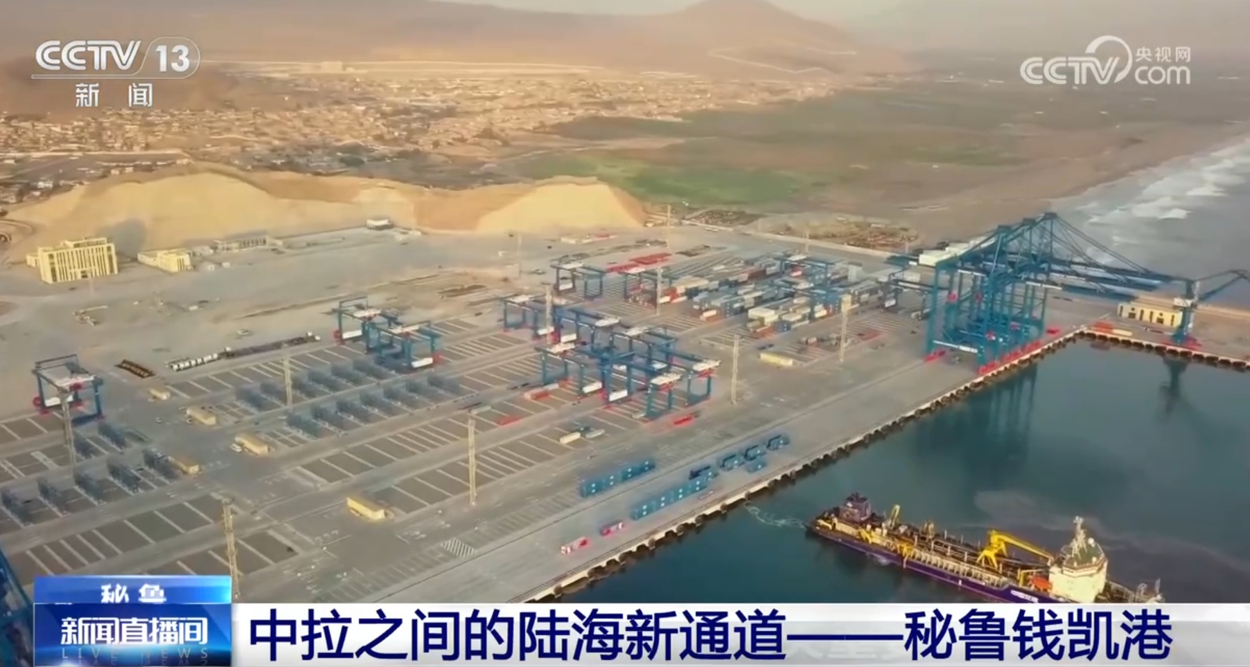 央视网消息:位于秘鲁首都利马以北钱凯湾内的钱凯港,是中秘共建“一带一路”重要项目,也是南美首个智慧港口,是中国和秘鲁两国合作共赢、互利互惠的典范,更是中拉合作的生动缩影。下面我们通过一个短片,来了解这条中拉之间的陆海新通道。