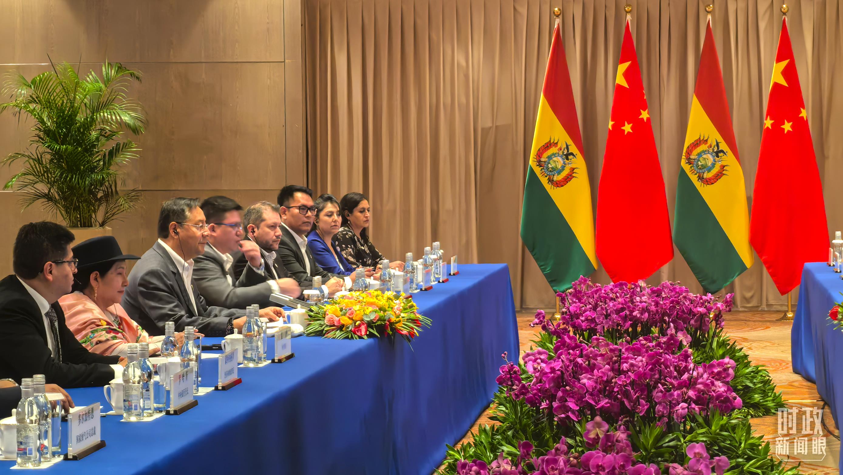 △习主席会见玻利维亚总统阿尔塞现场。(总台央广记者潘毅拍摄)