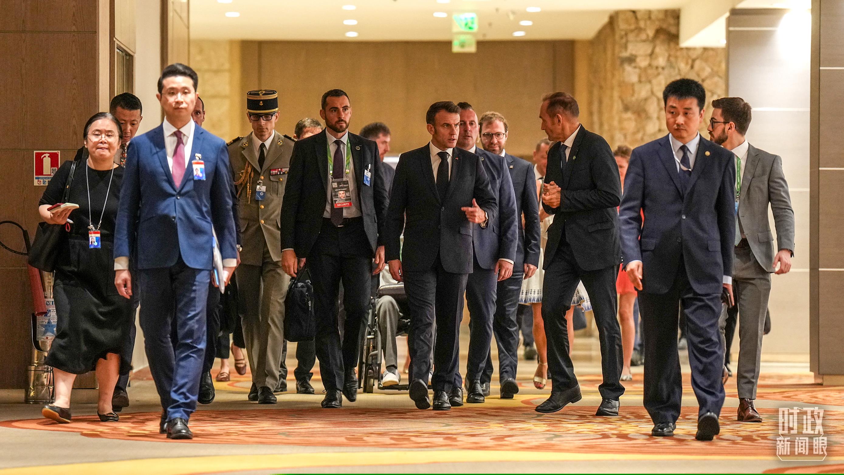 △法国总统马克龙前往会场。(总台记者李晋拍摄)