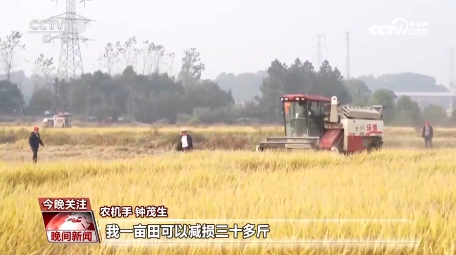 农机手 钟茂生:通过机收减损,一亩田可以减损三十多斤,六百多亩田可以增收两万多块钱。