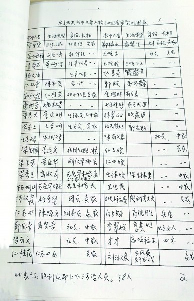 孟维刚汇总《创业史》书中主要人物原型和生活原型对照表 图片由作者提供