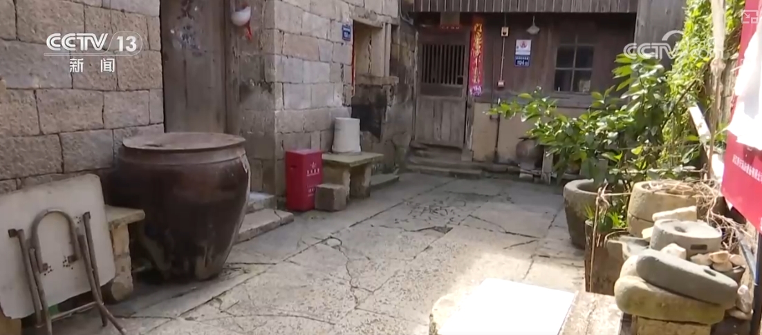 温岭市文化和广电旅游体育局文化遗产保护科张淑凝介绍,这是一个典型的石屋里面三合院的建筑,它由正屋加上两边的厢房组成。墙体是非常厚实的,里面还有一部分。外面很规整、整洁漂亮。里面填充的是不规则的乱石,然后用糯米灰浆蛎灰把它给黏起来。条件好的家庭会对内墙进行粉刷。