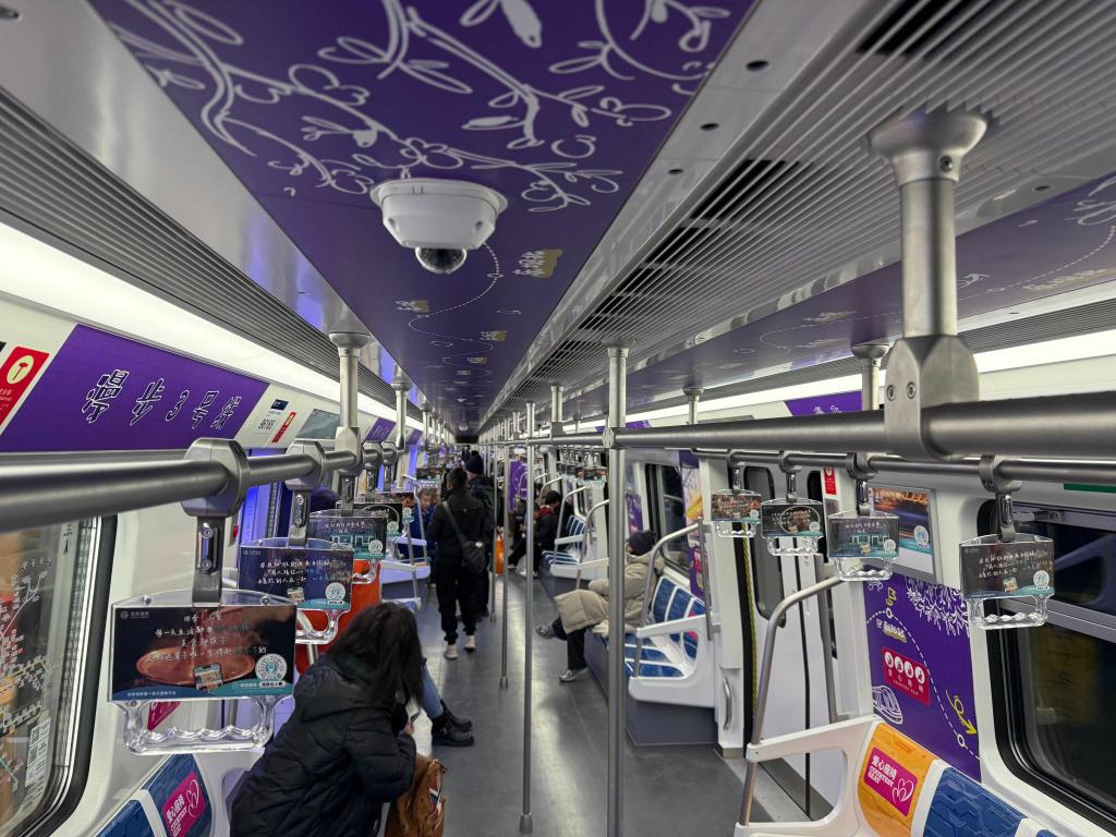 人们乘坐“漫步3号线”主题列车。新华社记者 张骁 摄