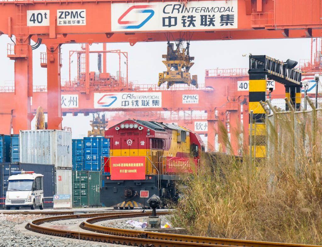 2024年西部陆海新通道班列第10000列发车。(北部湾港集团供图)