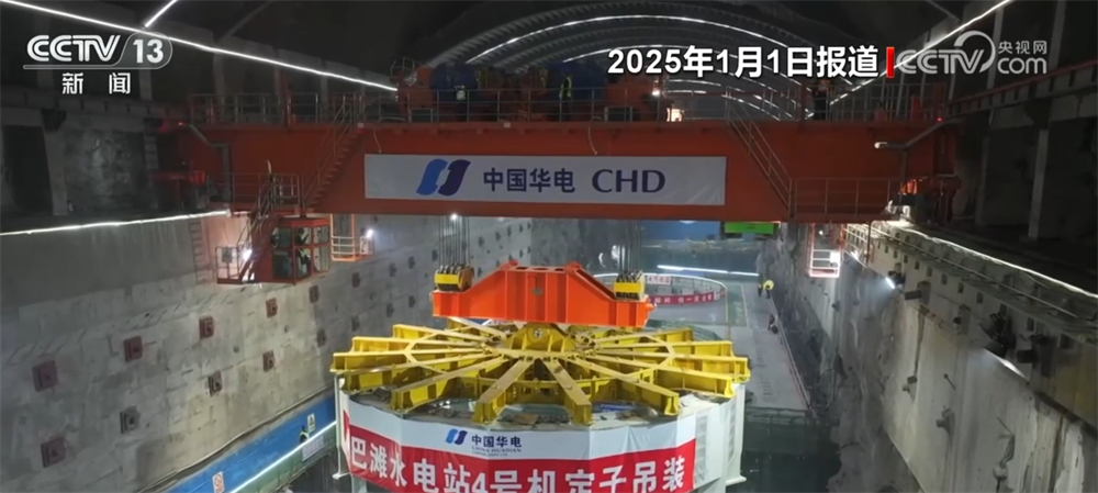 记者在叶巴滩水电站的地下厂房看到,首台定子已经落位到坑中,意味着吊装已经顺利完成。定子是水电站发电机组的核心设备,它的安装精度直接影响机组的发电效率。后续还需要把螺栓对准拧紧,再做一些调试校核的工作。此次定子的吊装完成,也按下了叶巴滩水电站首台机组安装的快进键,后续会加快推进转子、水轮机组部件的安装工作。