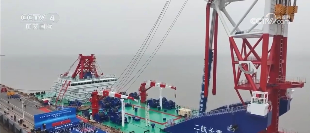 目前,世界上最大的打桩船“二航长青”轮5日在江苏启东交付。该轮总长130.5米,桩架高度150米,采用国内自主研发生产的5000吨推力油缸,可打最大桩重700吨、直径7米的桩基。投入使用后,将在跨海大桥等工程建设中发挥重要作用。