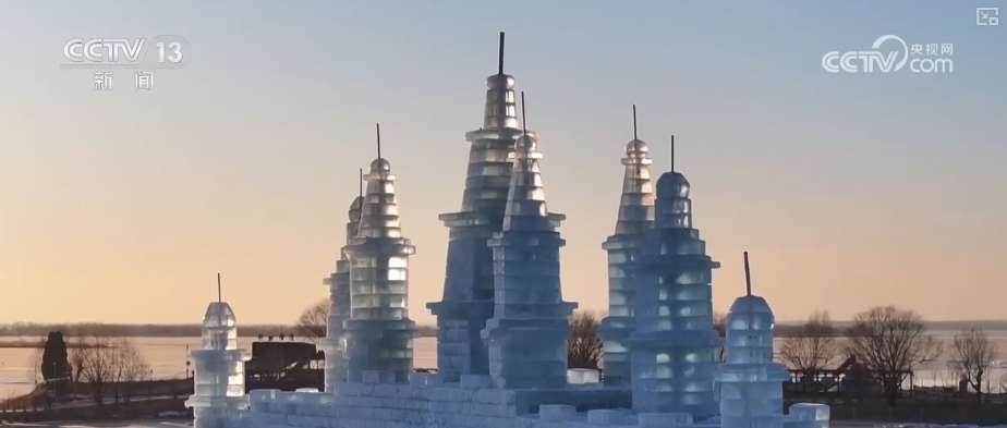 这座冰城堡是目前沈阳单体面积最大的冰雕建筑,吸引了很多游客在这里打卡拍照。