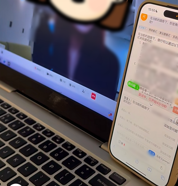 “比如面试官问的知识点我可能不是很懂,这时候AI在旁边,就相当于现场帮我搜索。”李欣表示,她会把手机靠在电脑上,在AI给出即时反馈后,悄悄瞄一眼。“但是为了不被发现,你的手指要及时滑动屏幕上的答案,让要说的那几行字始终保持在摄像头上下的位置,眼睛不能瞄来瞄去。”