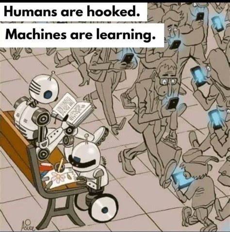 采访结束前,萧芳向记者发来了一幅名为《机器在学习,人类被勾住》的漫画,“我觉得这不应该是人类的未来,人还是要有人的特点,要保持思考的、真实的状态”。