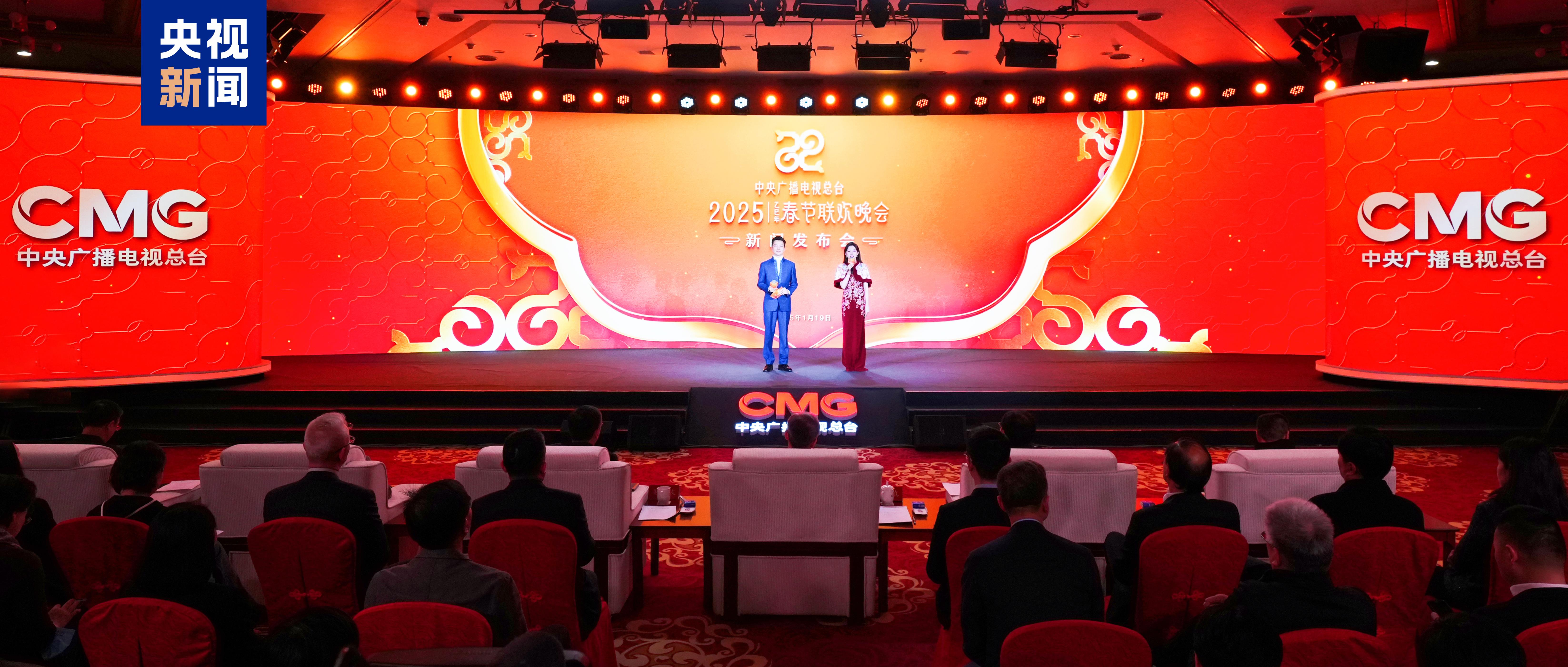 1月19日,中央广播电视总台《2025年春节联欢晚会》举行新闻发布会,介绍节目和技术创新亮点,官宣主持人阵容和舞美设计。