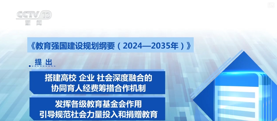 除了财政投入的主渠道外,《纲要》还提出“搭建高校、企业、社会深度融合的协同育人经费筹措合作机制。发挥各级教育基金会作用,引导规范社会力量投入和捐赠教育。”也就是不断扩大教育经费总量,拓宽经费筹措渠道。