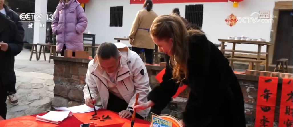 除了看表演,还可以品尝传统美食、写春联、制作年夜饭。来凤鱼是当地的非遗传统美食,以其色彩鲜艳、香气醇厚、麻辣鲜香,备受食客喜爱。在非遗传承人的指导下,大家围在一起,掌勺翻炒,亲手参与到年夜饭制作的每一个环节,感受热气腾腾的年味。