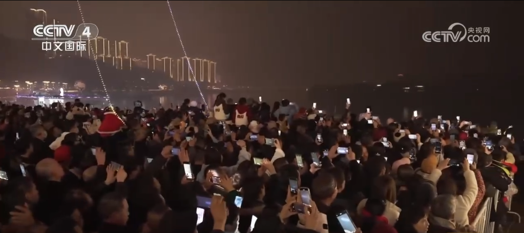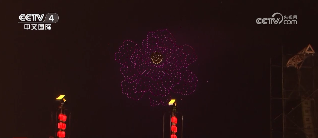 夜色中,上千架无人机腾空而起,翻转变化,组成了各式图案。一朵超大的牡丹花在夜空中逐渐绽放,雍容华贵;立体的蛇形蜿蜒盘旋,寓意蛇年即将到来;还有融合了古代文化和神话故事的图案,引得众多市民游客观赏拍照,现场不时传来阵阵掌声和欢呼声。