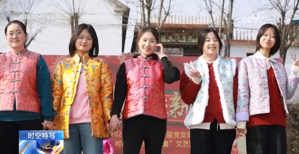 而在大集上,一群身着花棉袄走秀的队伍格外显眼,队伍里既有村里活泼可爱的孩子,也有寒假来村里支教的大学生。