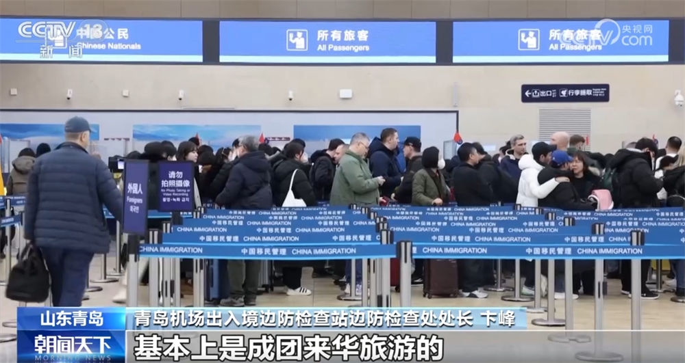 青岛机场出入境边防检查站边防检查处处长卞峰称:“近期从青岛机场口岸入境的外籍旅客中多了很多的年轻群体,基本上是成团来华旅游的,还有一部分是以家庭为单位,带着孩子一起回乡过年。”